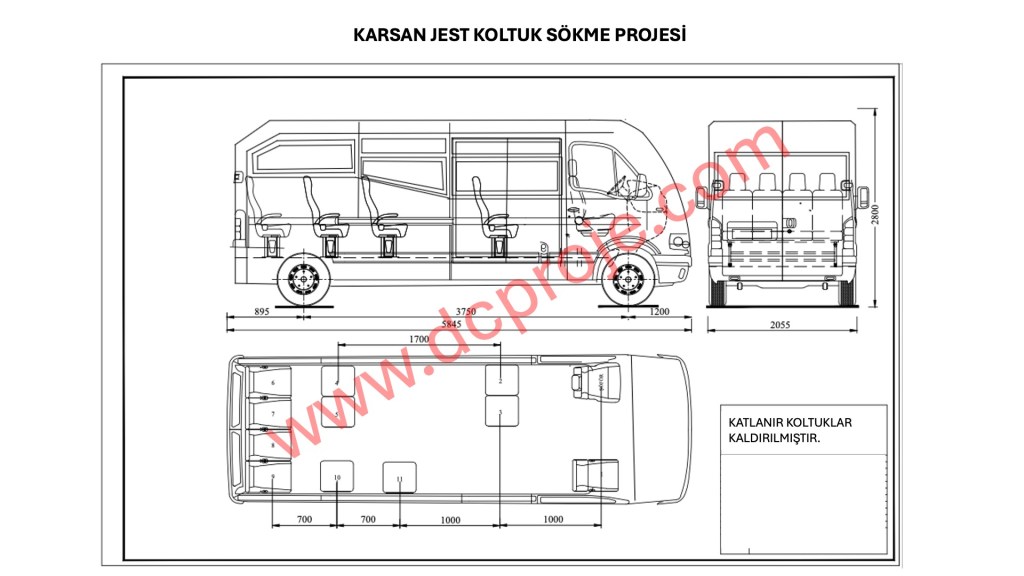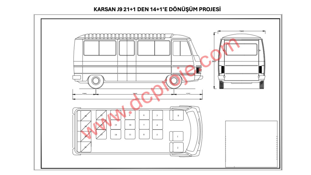 Otobüs grubu araçların koltuk sökülerek 14+1 kişilik minibüse araç plan proje ile dönüştürülmesi,